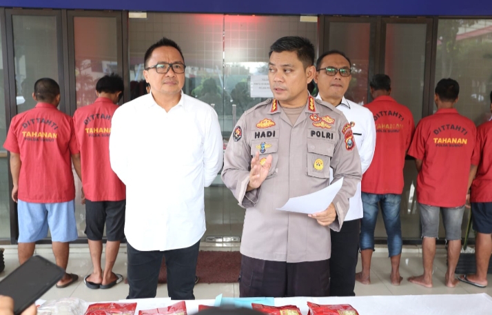 “Untuk pengungkapan tindak pidana narkoba sepanjang 2023 sebanyak 5.225 kasus dengan tersangka 6.570 orang. Sedangka untuk barang bukti sabu 1.122,35 kg, ganja 2.259.01 kg, pohon ganja 395.064 batang, ladang ganja 155 hektar dan pil ekstasi 181.675,50 hektar,” tutur Hadi.