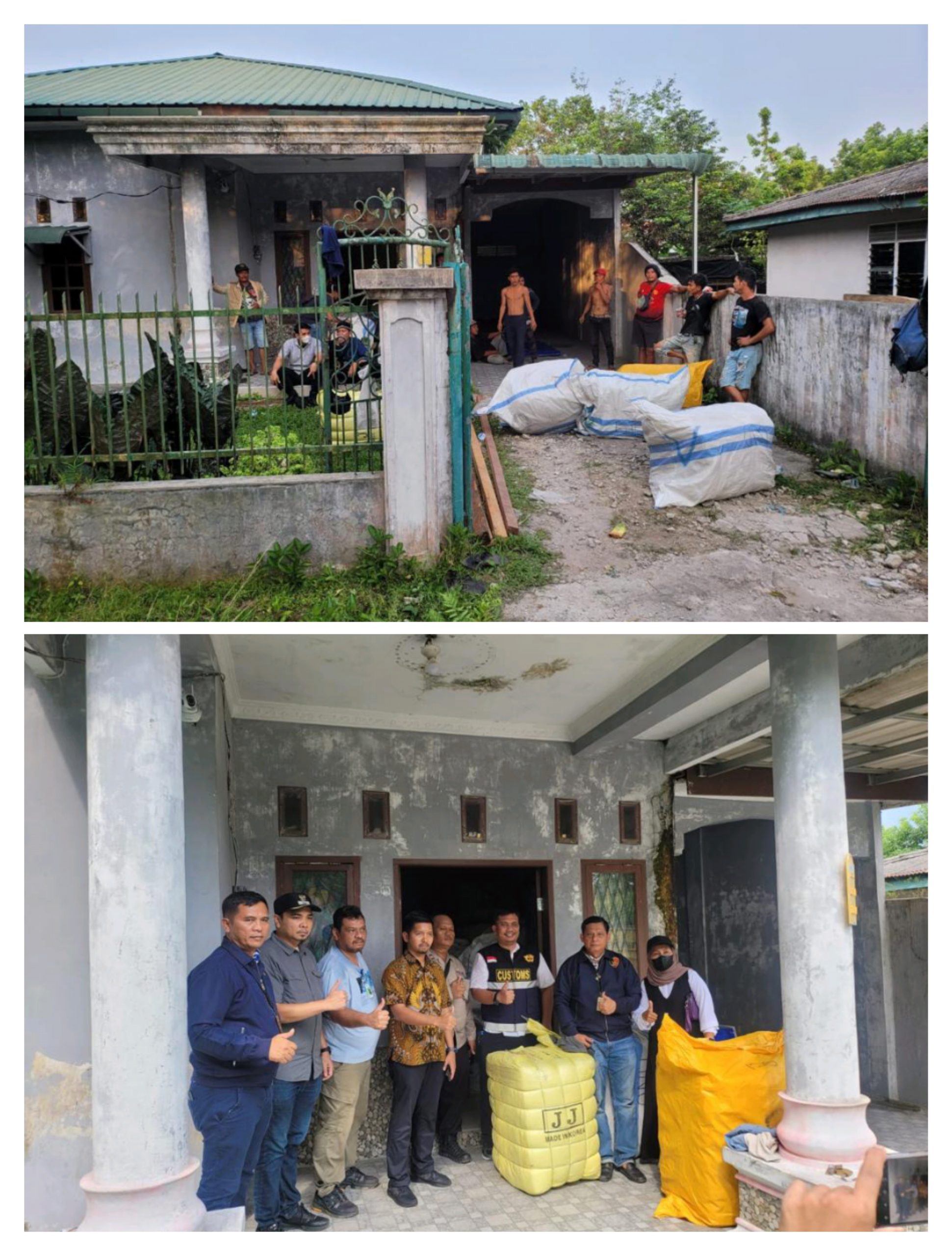 INVOCAVIT.COM, MEDAN – Direktorat (Dit) Reskrimsus Polda Sumut bersama Kanwil Bea Cukai Sumut menggerebek rumah dijadikan tempat penyimpanan pakaian bekas (Ballpres) ilegal di Kompleks Medan Permai, Jalan Serimpi, Kelurahan Namo Gajah, Kecamatan Medan Tuntungan.