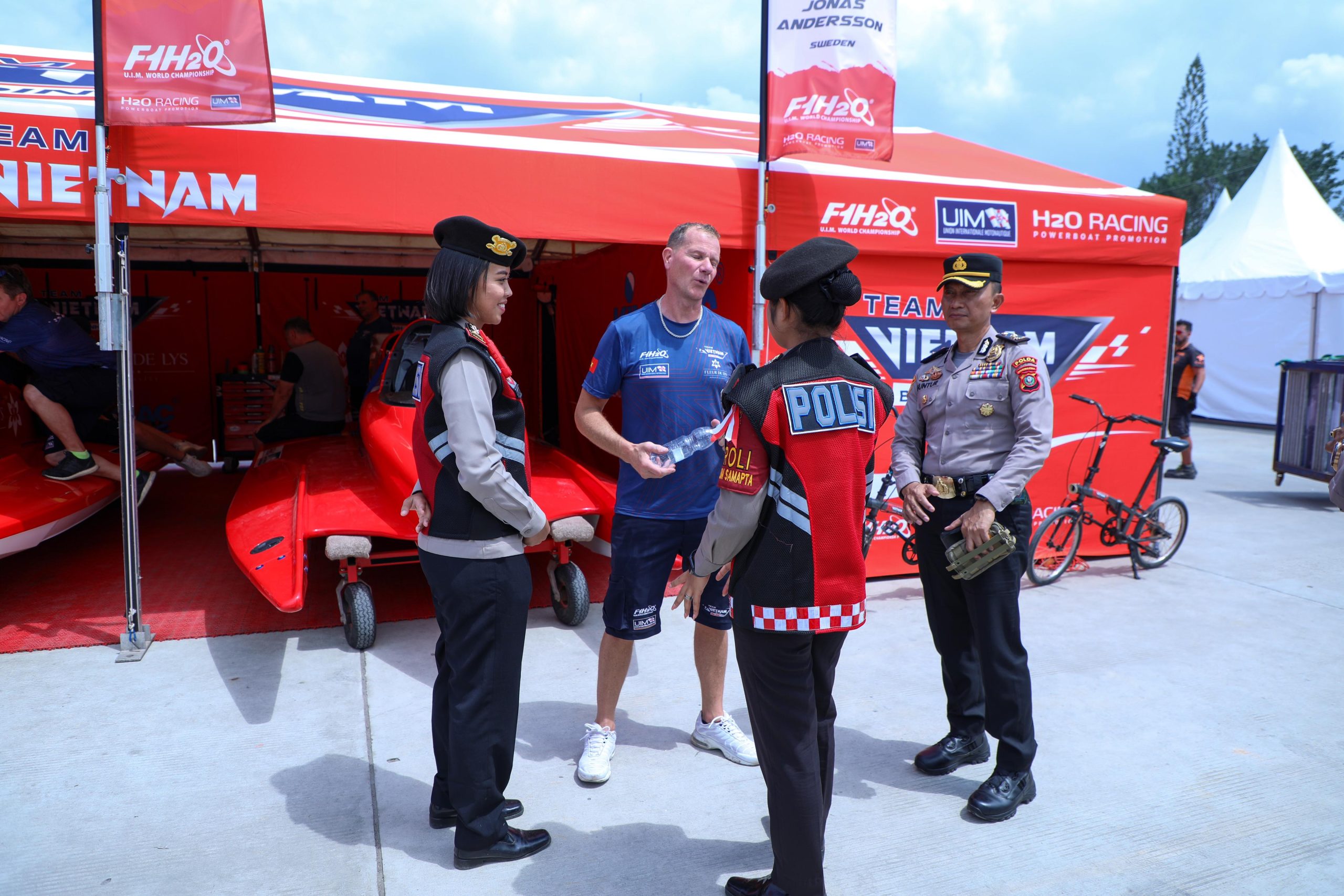 Polisi Mahir Bahasa Inggris Polda Sumut Layani Wisatawan F1 Powerboat.(ist).