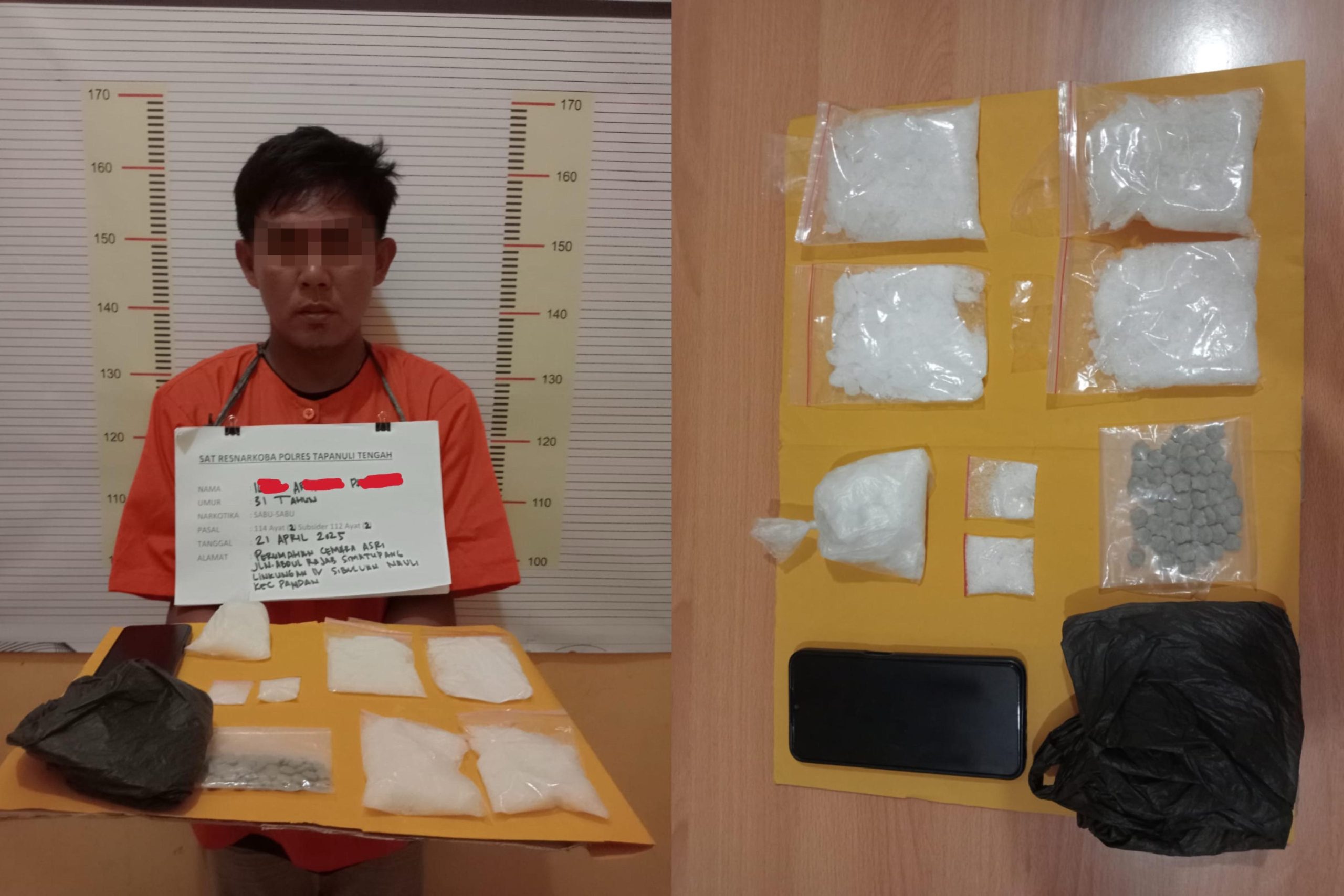 Tersangka IAP (31), pengedar sabu dan pil ekstasi itu ditangkap tidak jauh dari kediamannya di Jalan Abdul Rajab Simatupang, Kelurahan Sibuluan Nauli, Kecamatan Pandan.