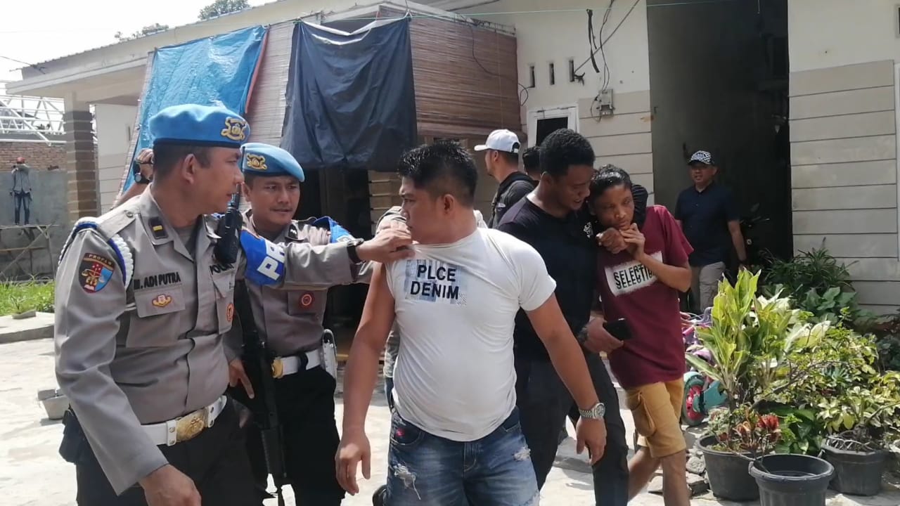 Petugas menggiring terduga pelaku narkoba dari lokasi.
