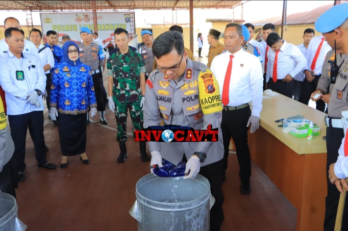 LABUHANBATU, INVOCAVIT.COM – Polres Labuhanbatu menggelar pemusnahan Barang Bukti berupa sabu seberat 15 Kilogram dihadapan Forum Koordinasi Pimpinan Daerah (Forkopimda) yang digelar di Gedung Serbaguna dijalan MH Thamrin No. 07 Rantauprapat,Senin (18/03/2024).