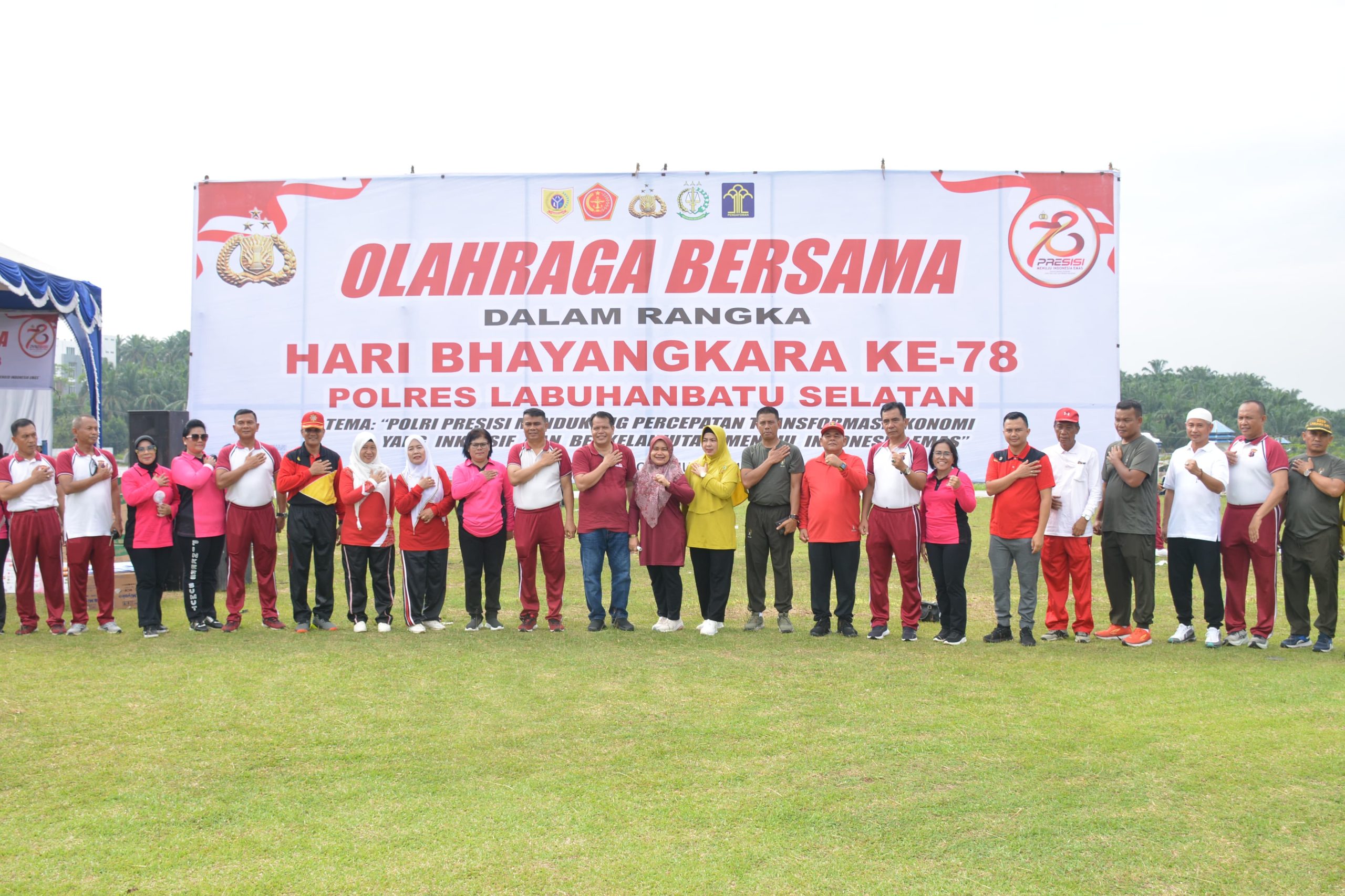 Polres Labusel menggelar olahraga bersama dalam rangka Hari Bhayangkara ke-78, Jumat (28/6/2024).