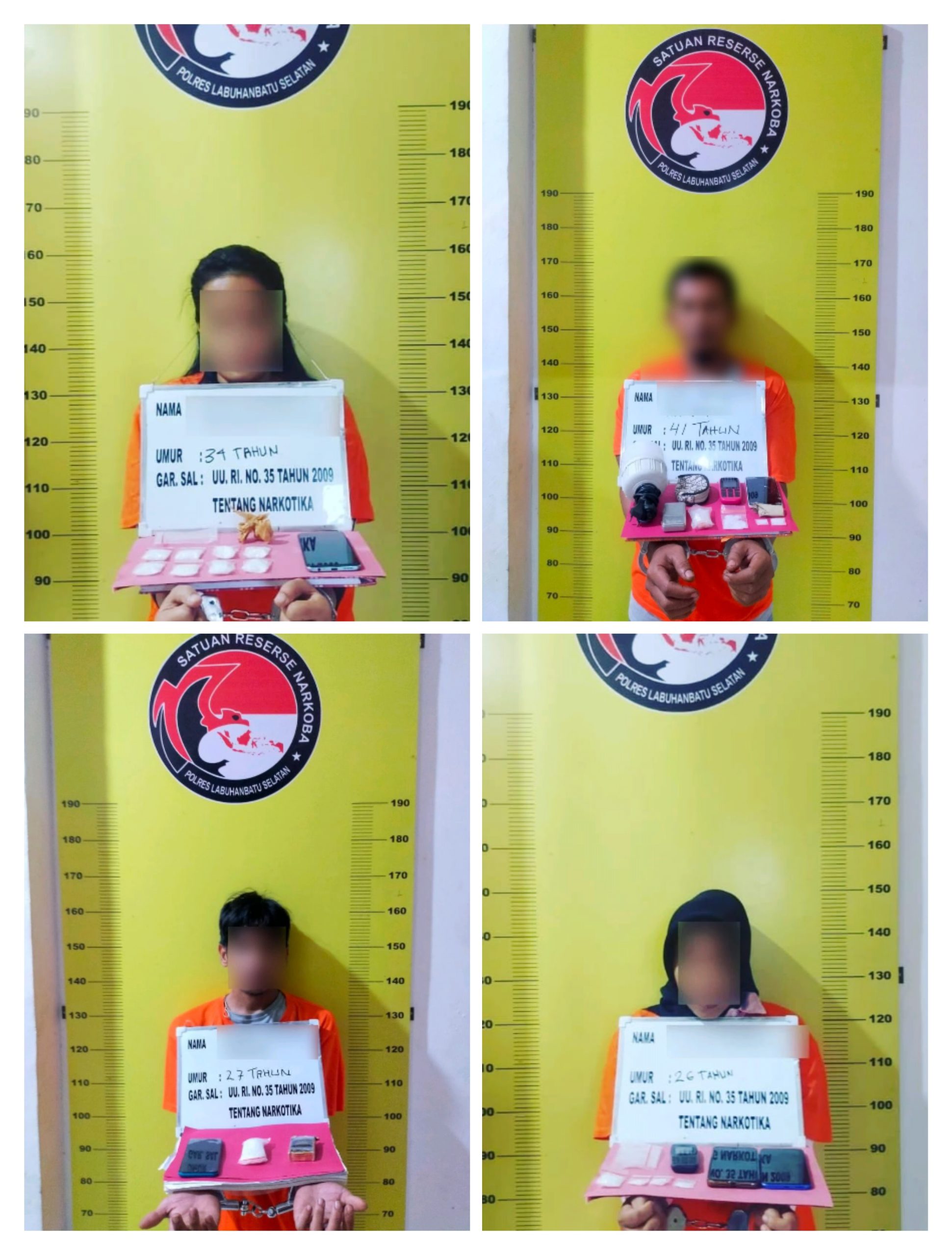 Tersangka ditangkap di kediamannya dDusun Al-Amin, Desa Aek Batu, Kecamatan Torgamba, Labusel dengan barang bukti 1 paket kecil diduga sabu seberat 0,09 gram brutto.