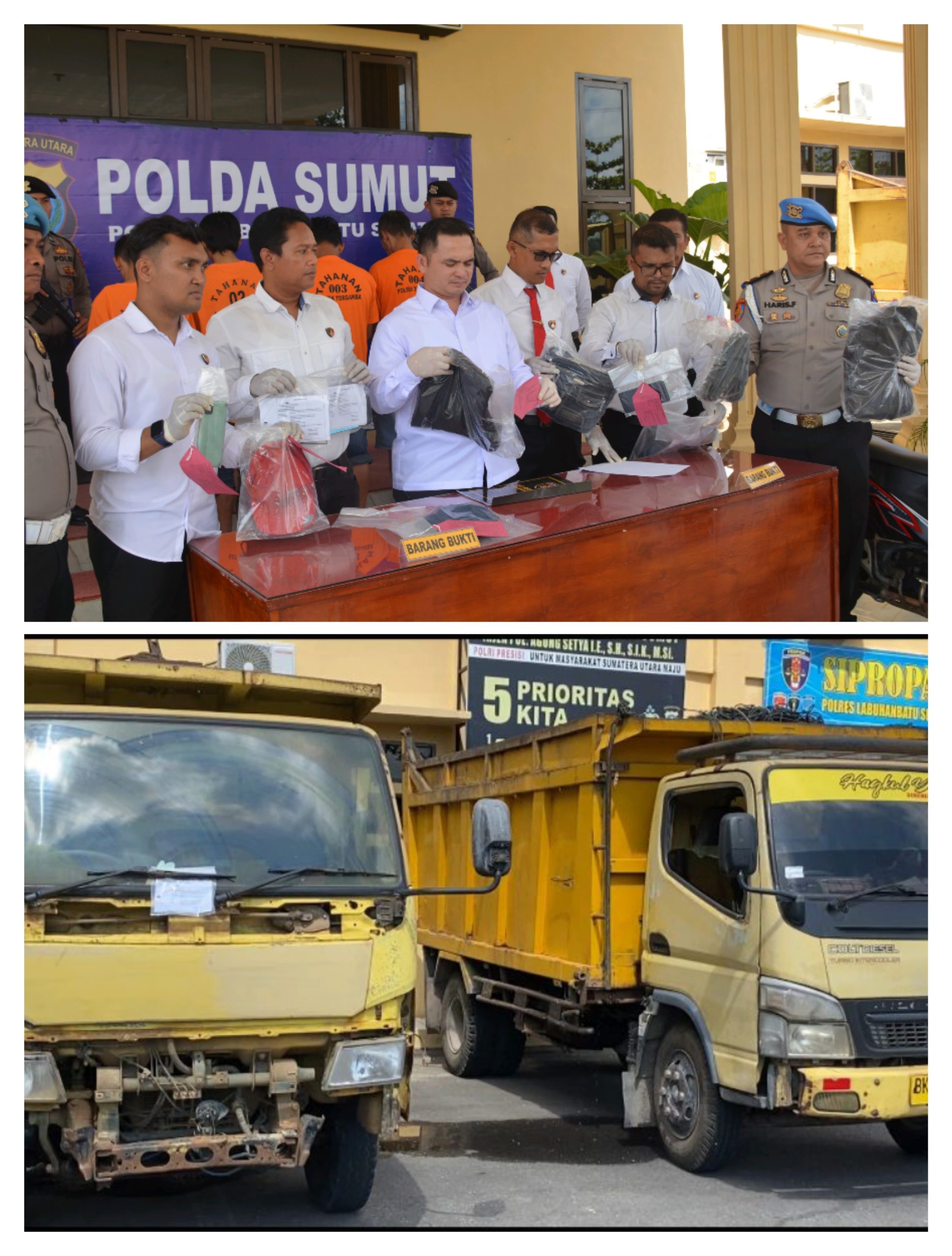 Kasus itu terungkap setelah Satuan Reskrim Polres Labusel menyelidiki laporan korban hingga berhasil menangkap dua eksekutor serta penadah bersama barang bukti 2 unit dump truk jenis Mitsubishi.