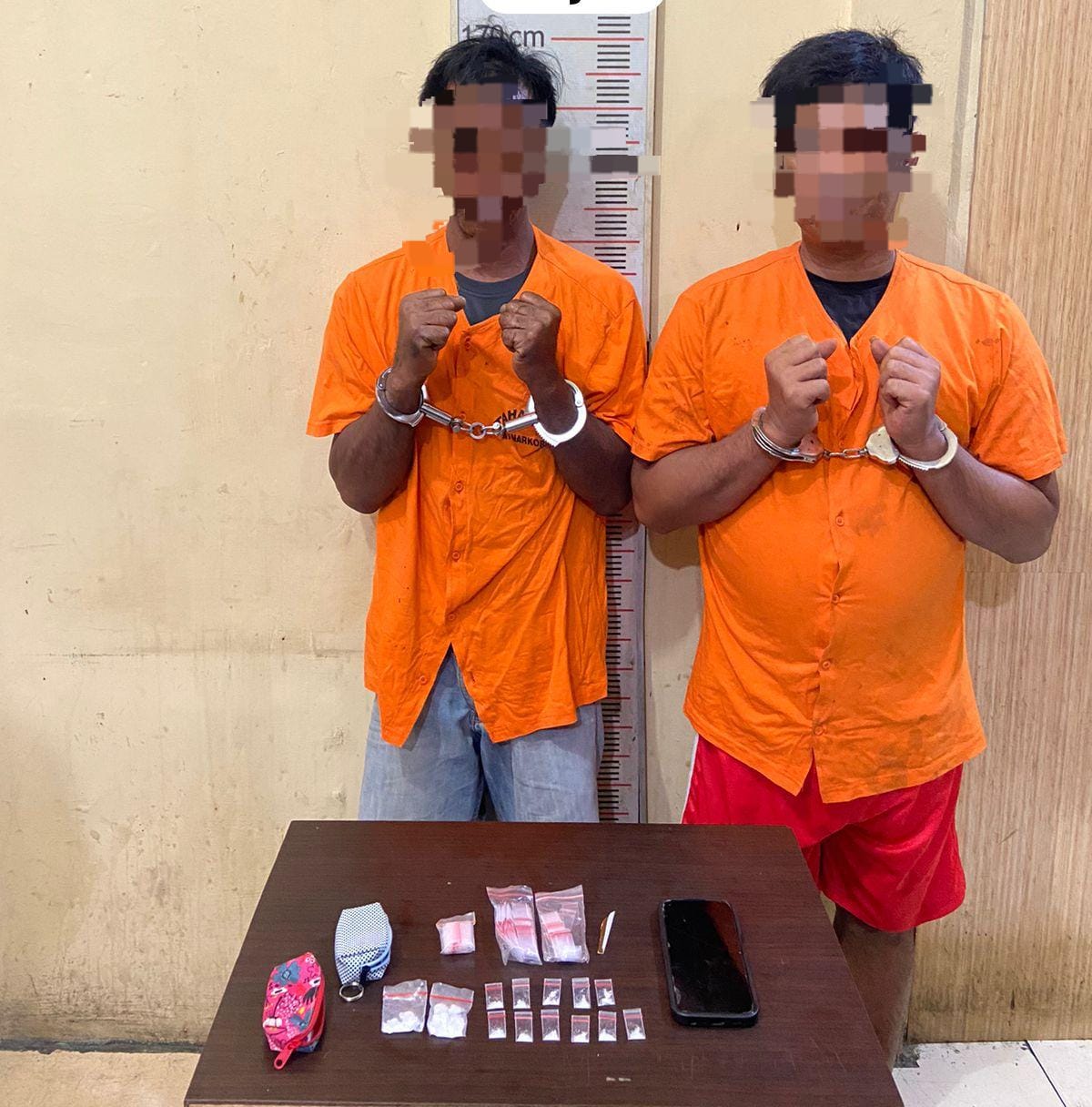 Dalam penangkapan tersebut, polisi juga menyita sejumlah barang bukti, antara lain dua plastik klip bening ukuran sedang dan sebelas plastik klip kecil berisi sabu, dua dompet kecil, sebuah sekop sabu, tiga bungkusan klip bening kosong, sebuah ponsel Oppo berwarna biru tua, dan sebuah kantong plastik hitam. Barang-barang tersebut ditemukan bersama kedua tersangka saat penangkapan berlangsung.