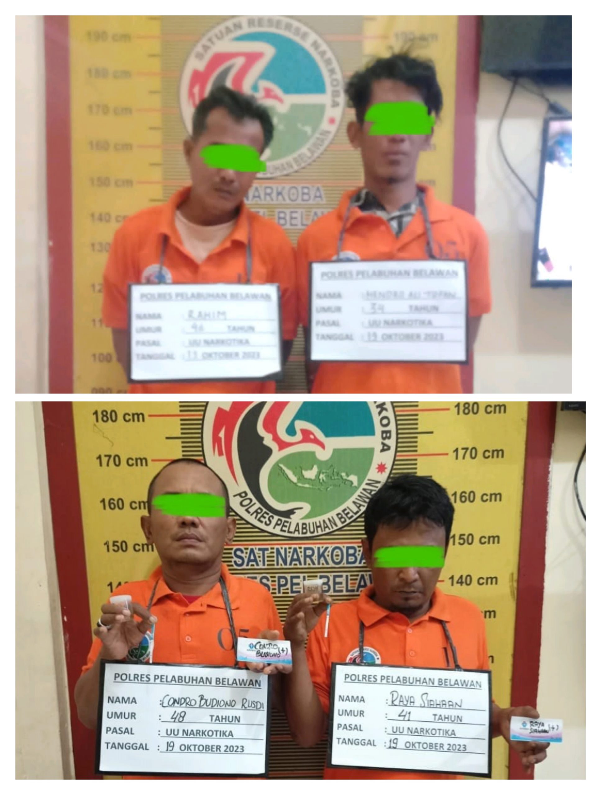 “Ada 4 pelaku yang kita amankan di TKP, diantaranya Hendro (34), Rahim (46) dengan barang bukti 1 alat hisap sabu lengkap kaca pin yang berisi sisa bakar sabu-sabu, 2 buah mancis, 1 buah pipet yang ujungnya diruncingkan dan 1 plastik klip yang berisi sabu-sabu. Condro Budiono (48) hasil test urine positif mengandung metamphetamin dan