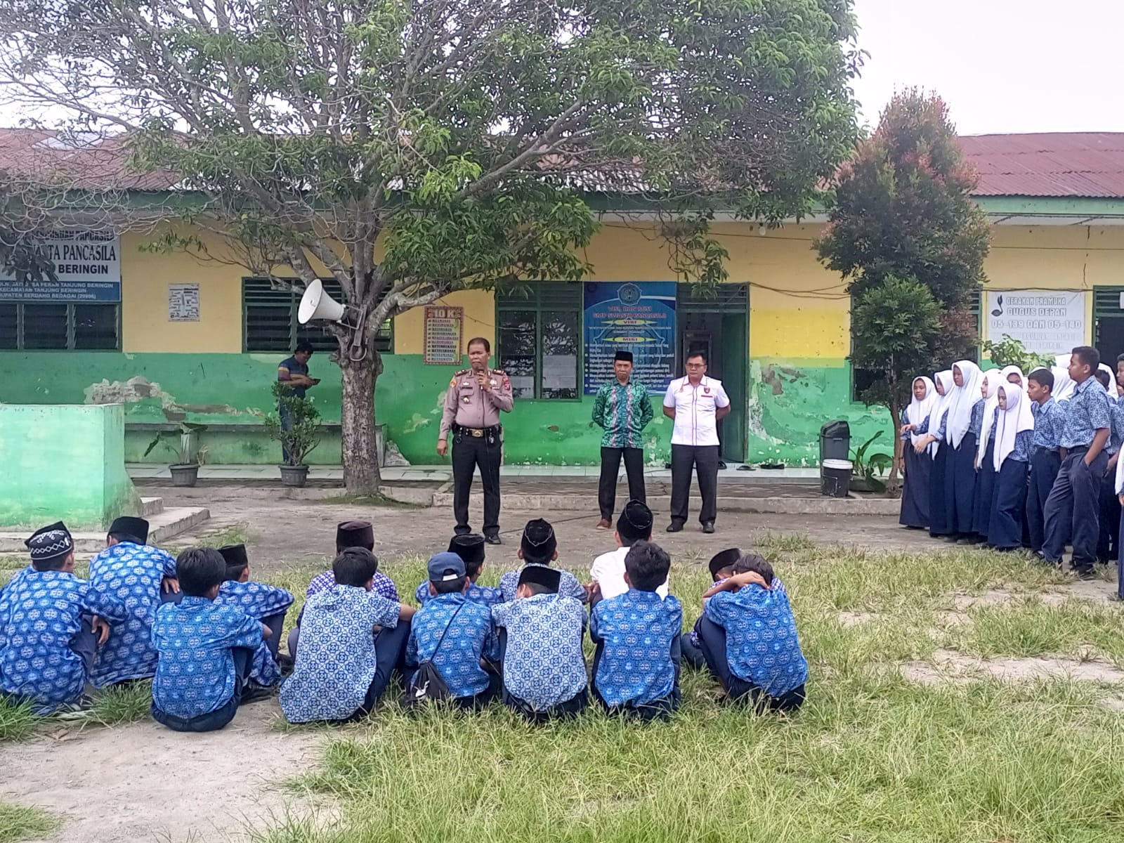 SERGAI, INVOCAVIT.COM – Polsek Tanjungberingin Polres Serdangbedagai (Sergai) memberikan penyuluhan hukum  tentang perundungan Stop bullying, stop mem-Bully ke pelajar SMP Swasta Pancasila di Jalan Jati Dusun VI Desa Pekan Tanjungberingin, Kecamatan Tanjungberingin, Rabu (4/10/2023).