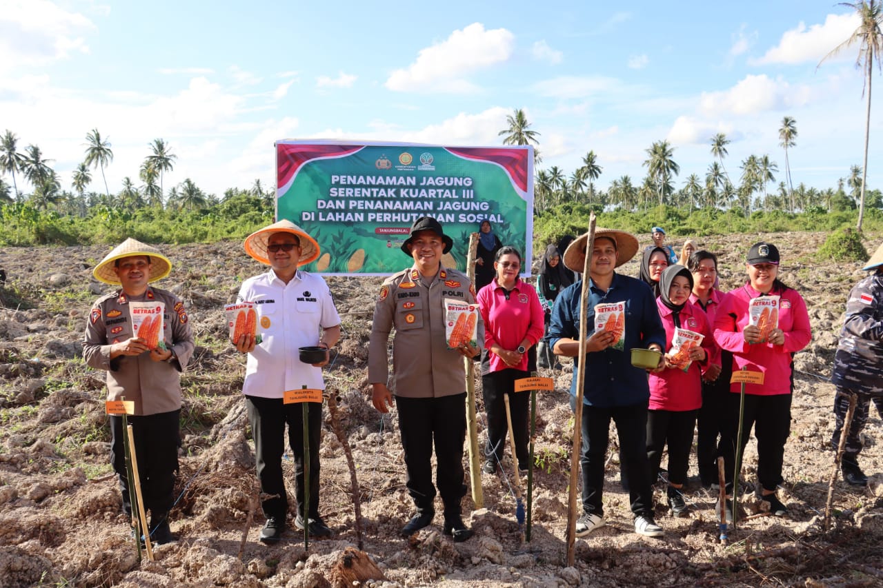 TANJUNGBALAI,INVOCAVIT.COM-Upaya Wujudkan Swasembada Pangan 2025, Polres Tanjungbalai bersama Pemerintah Kota Tanjungbalai melaksanakan penanaman Jagung Serentak Kuartal III di Jl. Batu VIII Kel. Sei Raja Kec. Sei Tualang Raso Kota Tanjungbalai, Rabu (9/7)