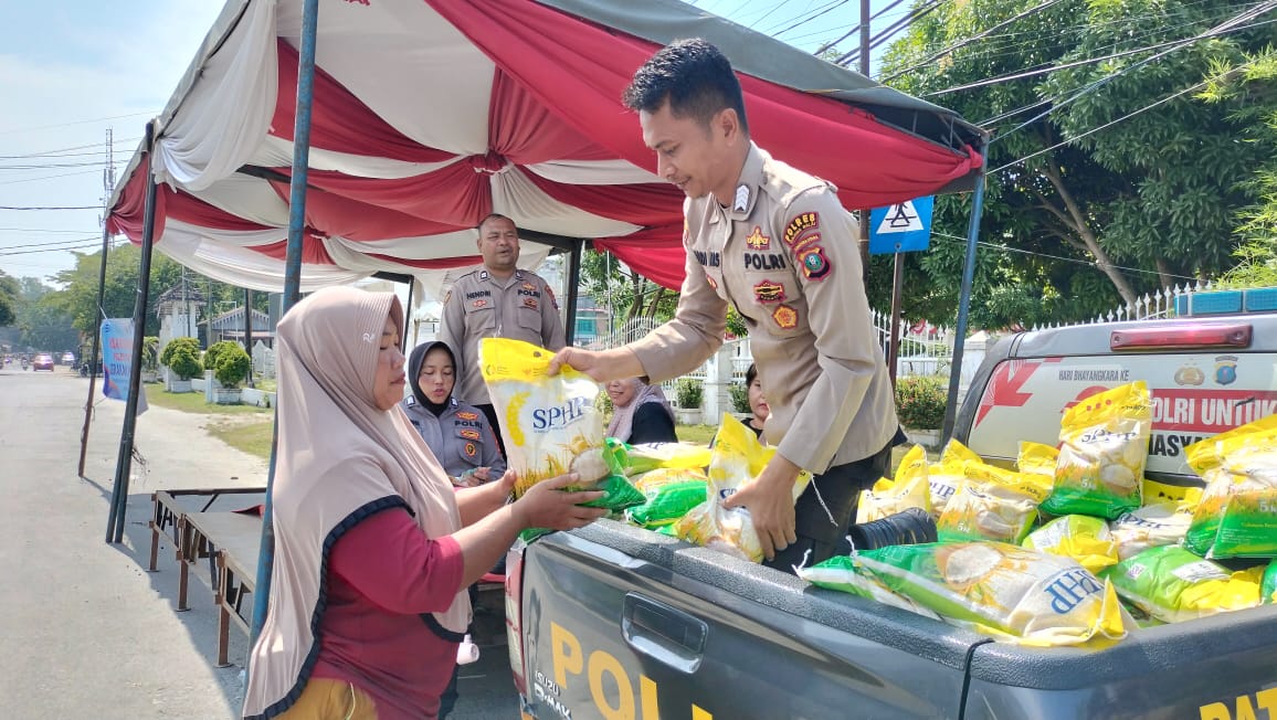 Iptu Zainuddin mengatakan Beras yang disalurkan merupakan beras produksi dari Perum Bulog bermerk SPHP (Stabilitas Pasokan dan Harga Pangan) sebanyak 200 karung dengan harga jual Rp. 60.000 kemasan 5 Kg.