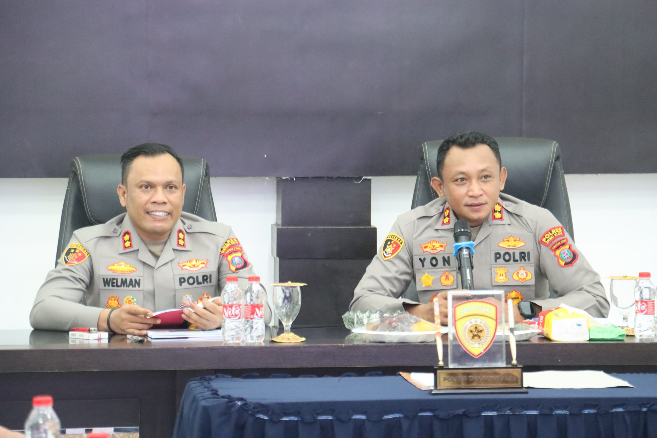 AKBP.Yon Edi Winara SH.SIK.MH.duduk berdampingan dengan Kapolres Tanjungbalai yang baru,AKBP.Welman Feri SIK. MIK dalam laporannya.(ist).