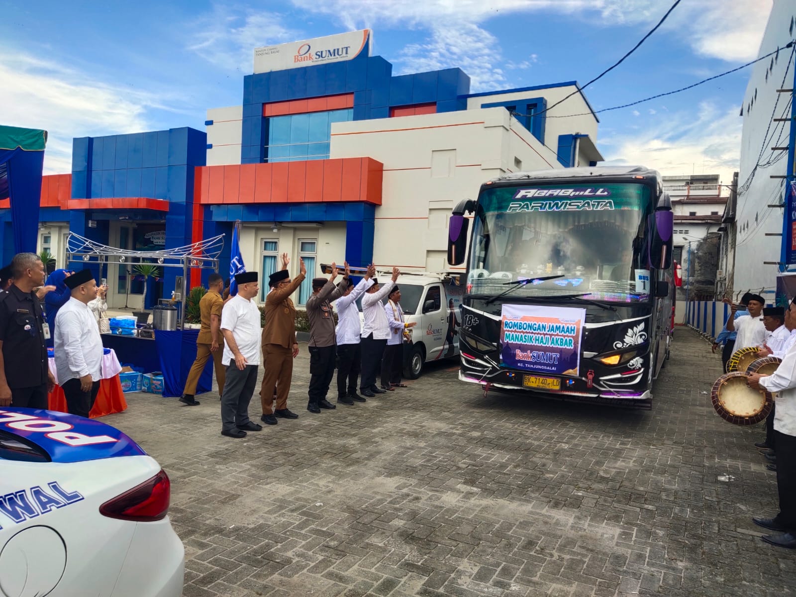 TANJUNGBALAI,INVOCAVIT.COM-Polres Tanjungbalai turut hadir dalam kegiatan pelepasan Manasik Haji Akbar calon jamaah haji tahun 1446 H/2025 M yang diselenggarakan oleh Bank Sumut Cabang Tanjungbalai, Senin (14/4/2025) pagi. Acara ini berlangsung di halaman kantor Bank Sumut di Jalan Jenderal Sudirman No.39, Kecamatan Tanjungbalai Selatan.