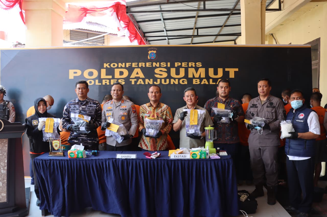 Polres Tanjungbalai Musnahkan 8.707,75 gram Sabu dan 224 Pil Ekstasi