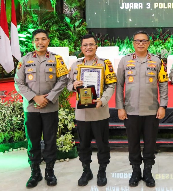 Penyerahan piala dan piagam penghargaan dilaksanakan di Gedung Aula Tribrata Polda Sumut, yang diserahkan langsung Kapolda Sumut Irjen Pol Agung Setya Imam Effendi SH SIK MSi kepada Kapolrestabes Medan Kombes Pol Dr Teddy John Sahala Marbun SH MHum, , Rabu (13/3/2024).