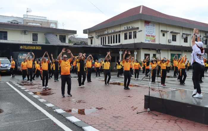 Kegiatan dimulai olahraga bersama yang melibatkan seluruh personel Polrestabes Medan.