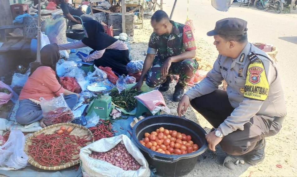 Polsek Kotarih dan Koramil cek harga Sembako dipadar tradisional.(Ist).