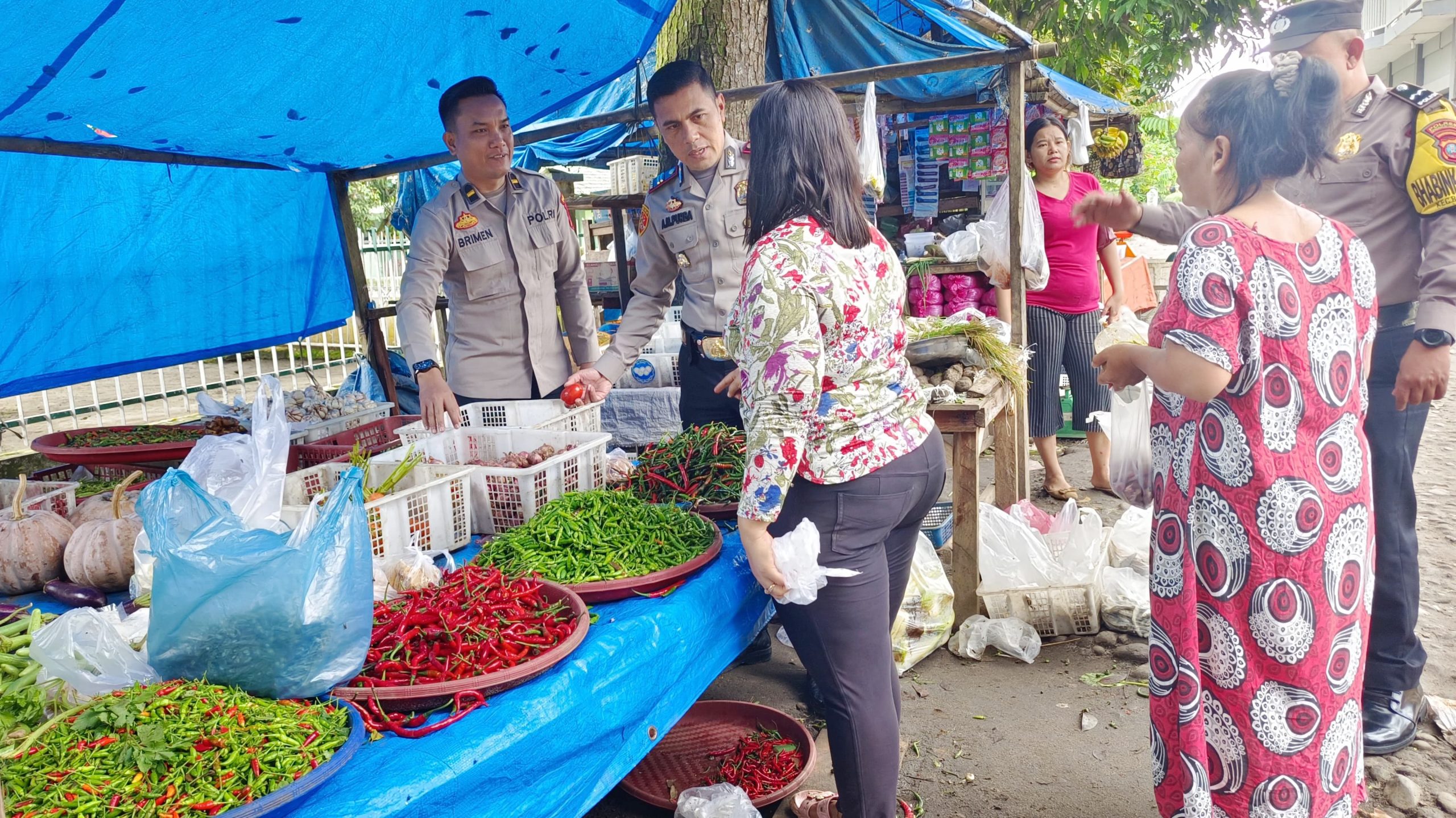 wakapolsek Kotarih IPDA Brimen dan anggota cek harga sembako jelang Puasa.(ist).