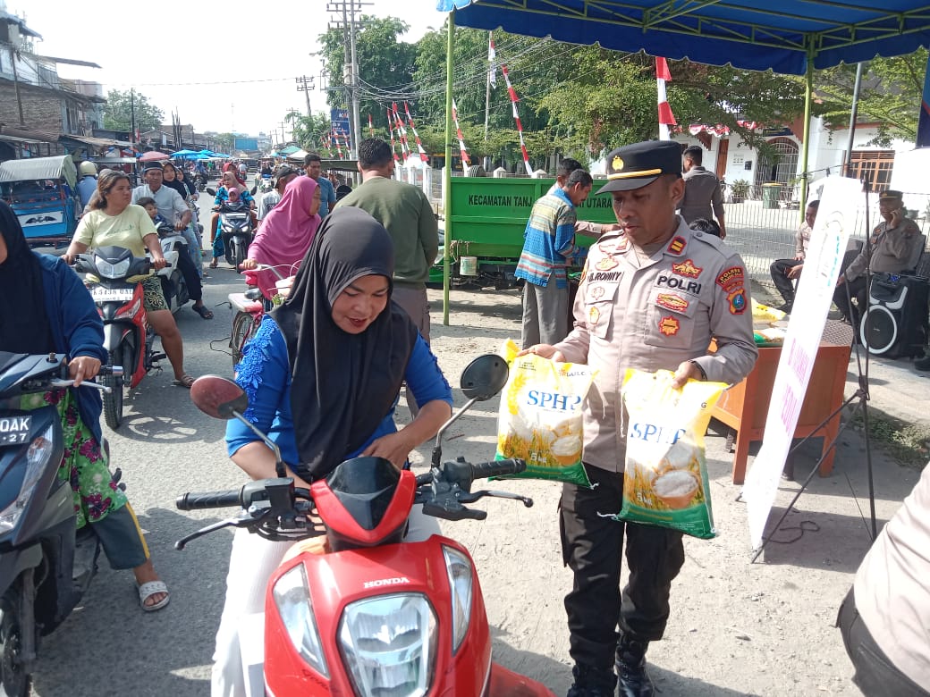 “Kami telah melaksanakan kegiatan gerakan pangan murah dengan mendistribusikan beras SPHP (Stabilisasi Pasokan dan Harga Pangan) pada hari ini sebanyak 1 ton atau 200 karung dan sudah habis terjual dalam beberapa jam saja,” Ungkap Kapolsek