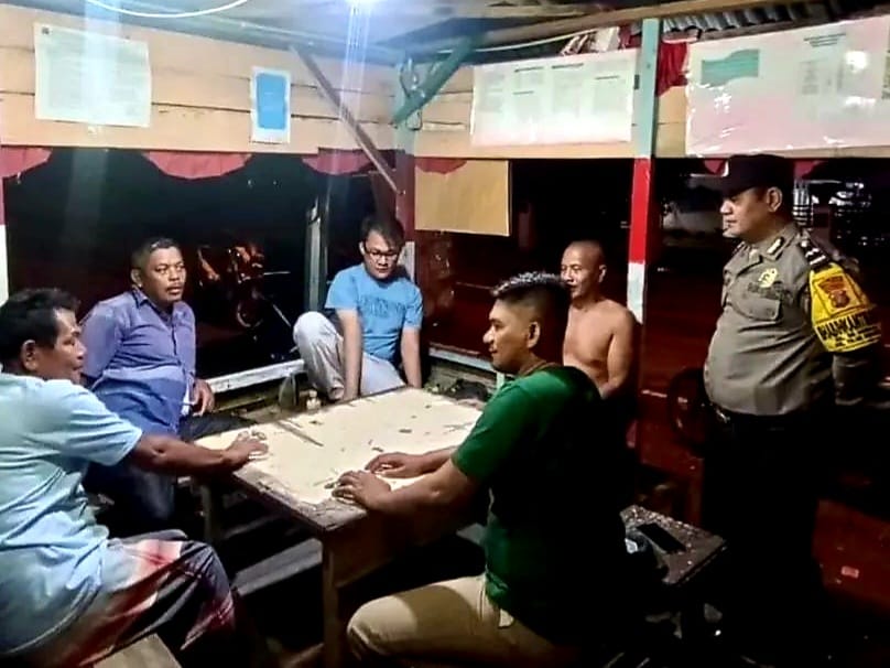 Kepada Petugas Jaga Bapak Kumis dan Bapak Muchlis, Bhabinkamtibmas memberikan arahan dan pesan-pesan kamtibmas, serta mengajak warga untuk melaksanakan ronda malam secara aktif dan bertanggung jawab.