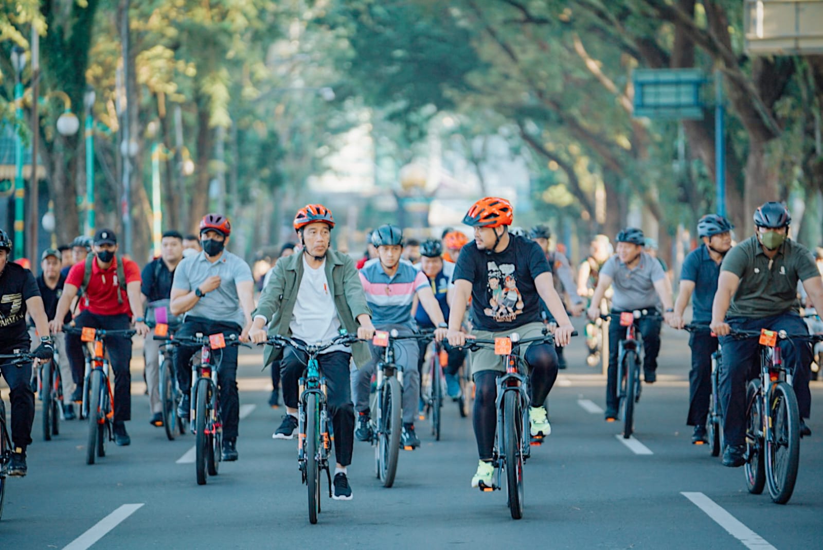 INVOCAVIT.COM, MEDAN – Presiden Joko Widodo didampingi Wali Kota Medan Bobby Nasution, Gubernur Sumut Edy Rahmayadi beserta unsur Forkopimda Sumut dan Kota Medan tiba di Lapangan Merdeka Medan dengan mengendarai sepeda, Minggu (13/2).
