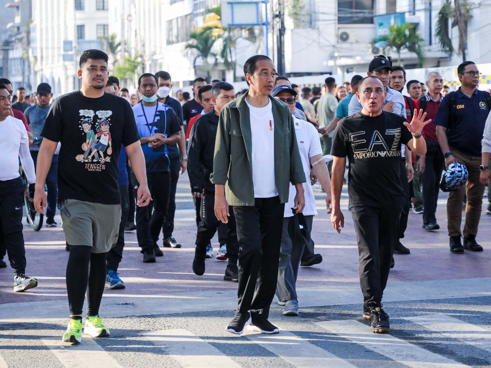 Dengan menggunakan sepeda, Presiden Jokowi didampingi Gubernur Sumut Edy Rahmayadi dan Wali Kota Medan Bobby Nasution berolahraga mengelilingi area CFD. Selanjutnya Presiden Jokowi bersama Edy Rahmayadi dan Bobby Nasution serta unsur Forkopimda Sumut berjalan kaki dari depan stasiun Kereta Api ke arah persimpangan Gedung Lonsum kemudian menuju ke Pos Blog.