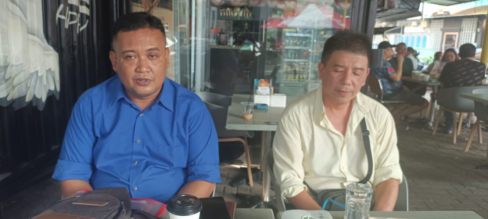 Franktino Sitanggang SH dan kliennya Edwin saat memberikan keterangan kepada awak media, Kamis (9/5). (ist)
