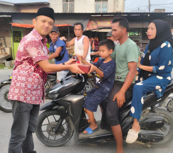 General Manager TBA Anwar Ahmad tampak sedang memberikan Takjil kepada pengguna jalan didepan kantor tersebut.(ist)