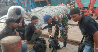Personil TNI-AL melakukan pemeriksaan barang bawaan Sejumlah ABK ketika saat mau berangkat.(ist)