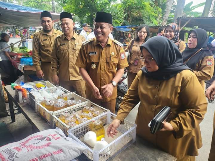 Waris Tholib saat surffe pasar cek harga bahan pokok (Anafisham).