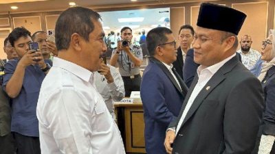 Anggota Komisi XIII DPR RI Dr Maruli Siahaan kompak bersama Direktur Pengamanan dan Intelijen Pemasyarakatan Brigjen Pol Tatan Dirsan Atmaja disela-sela RDP, Rabu (4/2).(ist)