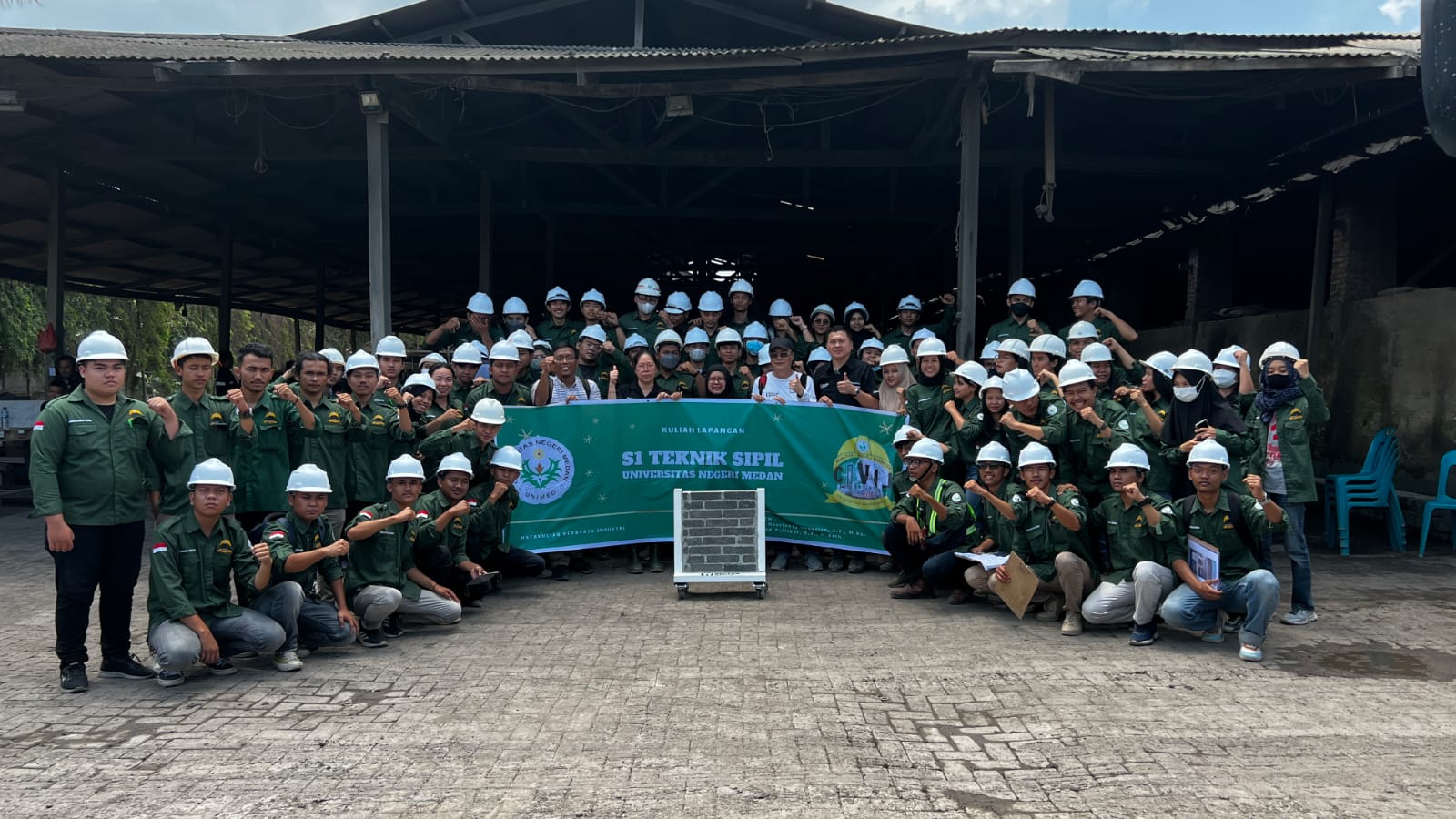 Sekitar 70 mahasiswa Program Studi S1 Teknik Sipil Fakultas Teknik Unimed menyaksikan langsung produksi bata Reclea Brick di pabrik berlokasi Jalan Medan-Tebing Tinggi Desa Sei Buluh, Kecamatan Perbaungan, Kabupaten Serdang Bedagai, Sumatera Utara, Selasa, 7 Maret 2023.