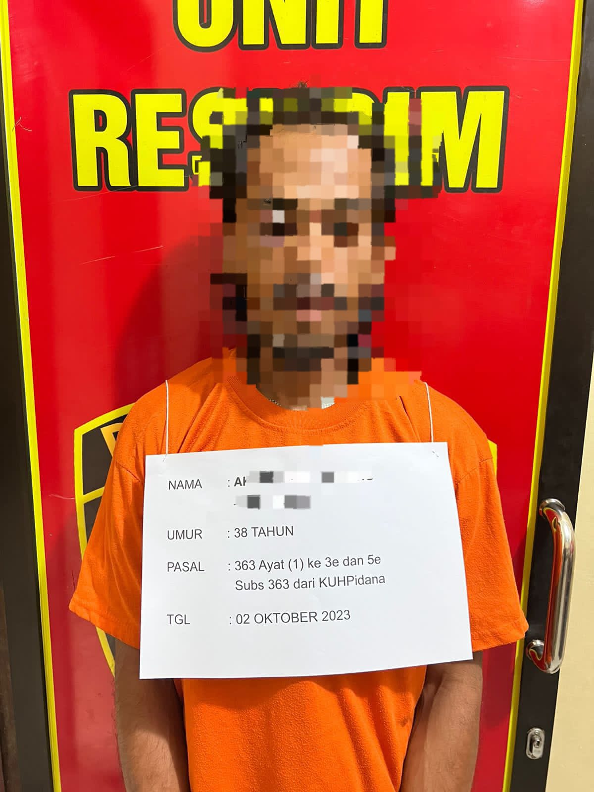 “Personil Unit Reskrim Polsek Datuk Bandar membawa pelaku tersebut ke Polsek Datuk Bandar yang kemudian dilakukan interogasi dengan hasil interogasi bahwa pelaku pernah melakukan pencurian sesuai dengan Laporan Polisi Nomor : LP / B / 104 / IX / 2023 / SPK / POLSEK DTB / POLRES T.BALAI / POLDASU tanggal 26 September 2023 Pelapor an. Meli Ritonga (43) Nelayan, Kel.Semula Jadi Kec.Datuk Bandar Timur Kota Tanjung Balai.