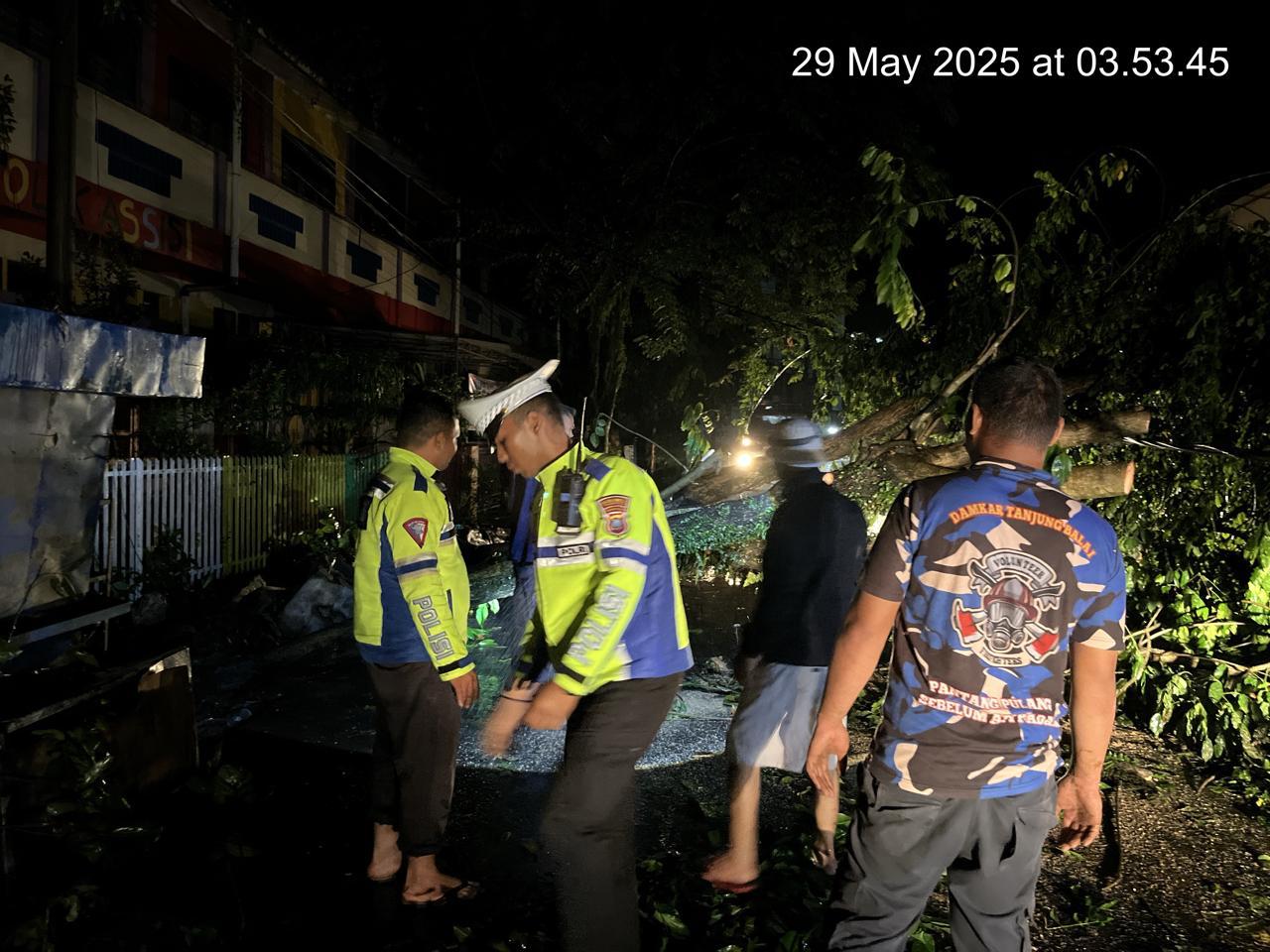 TANJUNGBALAI,INVOCAVIT.COM-Sebagai wujud pelayanan prima dan respons cepat terhadap keluhan masyarakat, Tim Spartan Polres Tanjungbalai bergerak cepat mengevakuasi pohon tumbang yang menutup akses jalan utama di Depan kantor Walikota Tanjungbalai, Rabu, (23/7) pukul 23.00 Wib