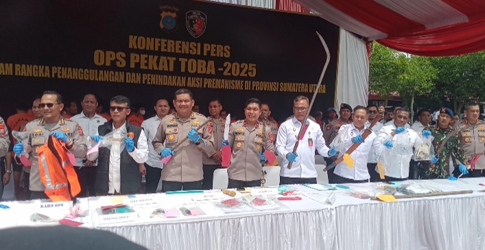 “Dari jumlah kasus yangdiungkap sebanyak 136 kasus dengan 178 pelaku telah naik tahap penyidikan, sementara 818 kasus dengan 952 orang telah dilakukan pembinaan,” kata Wakapolda Sumut Brigjen Pol Rony Samtana saat memimpin konprensi pers hasil Operasi Pekat Toba 2025 di Mapoldasu, Kamis (15/5).