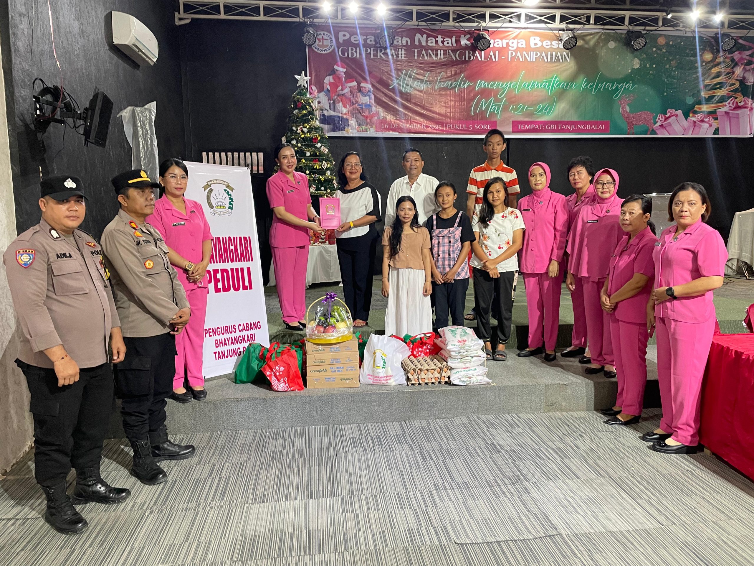 TANJUNGBALAI,INVOCAVIT.COM-Menjelang perayaan Natal, Pengurus Cabang Bhayangkari Tanjungbalai menebar kebaikan melalui program “Bhayangkari Peduli”.