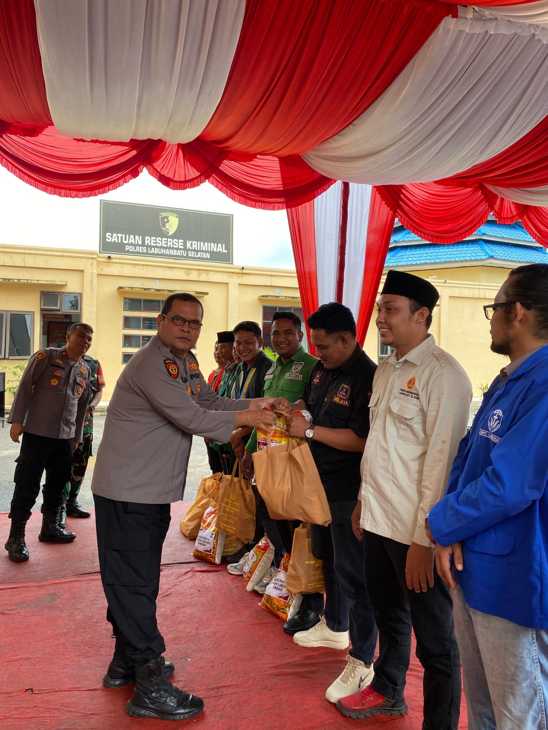 Sebanyak 160 paket bantuan sosial disalurkan kepada mahasiswa dan OKP yang ada di wilayah hukum Polres Labuhanbatu Selatan, antara lain HIMMAH, PMII, HMI, GMNI, BKRMI, GP Ansor, Pemuda Alwasliyah, Pemuda Muhammadiyah, Grib Jaya, GAMKI, MPC PP, dan IPK se-Kabupaten Labuhanbatu Selatan.