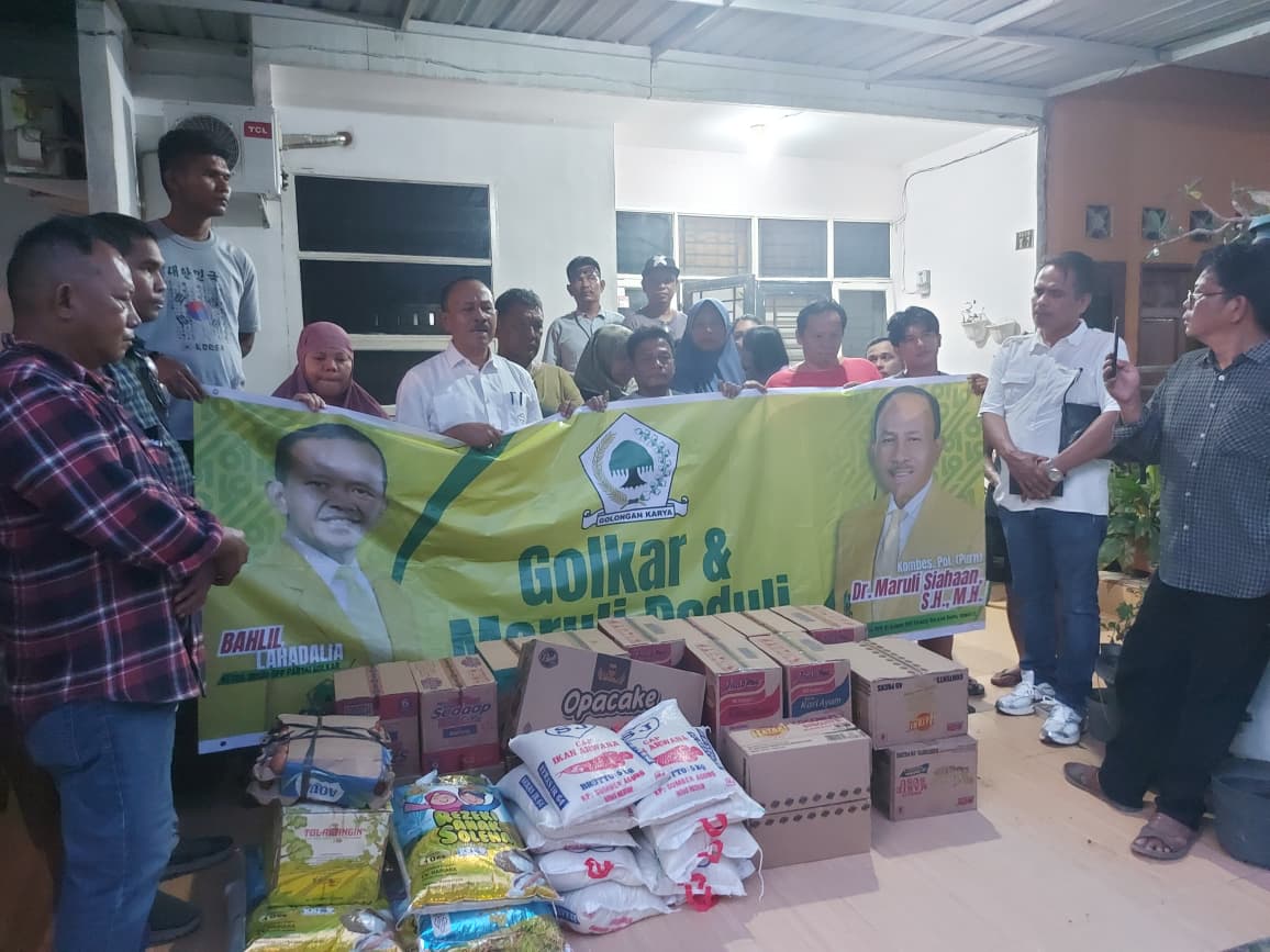 Anggota DPR RI Maruli Siahaan dan Relawan Palito Berikan Bantuan Kepada Warga Kel Mangga Tuntungan, Kamis (4/12).(ist)