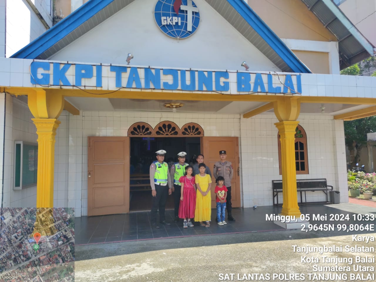 TANJUNGBALAI,INVOCAVIT.COM –Personil Sat Lantas Polres Tanjungbalai melaksanakan pengaturan lalulintas didepan gereja pada saat ibadah minggu sebelum berlangsung hingga selesai, Minggu (05/5/24) sekira pukul 09.00 wib sampai selesai.