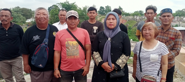 Panitia Cheng Beng, dari kiri ke kanan, Masno (perwakilan Desa Marindal I), Rudi (mewakili Yayasan Budi Luhur), Rudi Harianto (Ketua LPM Desa Suka Makmur) dan Retno Kartika (Ketua LPM Kelurahan Kedai Durian) dan panitia lainya saat diwawancarai di Pekuburan Yayasan Budi Luhur Jl.Stasiun, Kel Kedai Durian, Kec Medan Johor, Jumat (4/4).(foto. jos tambunan).