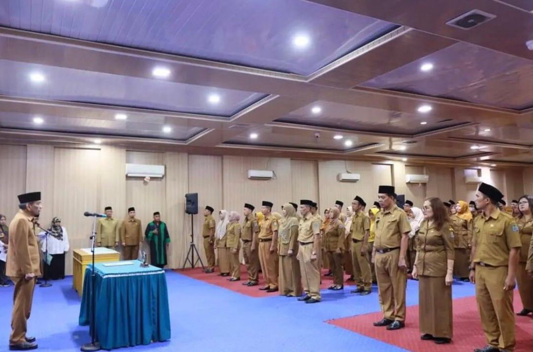 Sekda Kota Binjai H. Irwansyah Nasution saat melantik para kepala sekolah SD dan SMP di aula Pemko Binjai.(ist)
