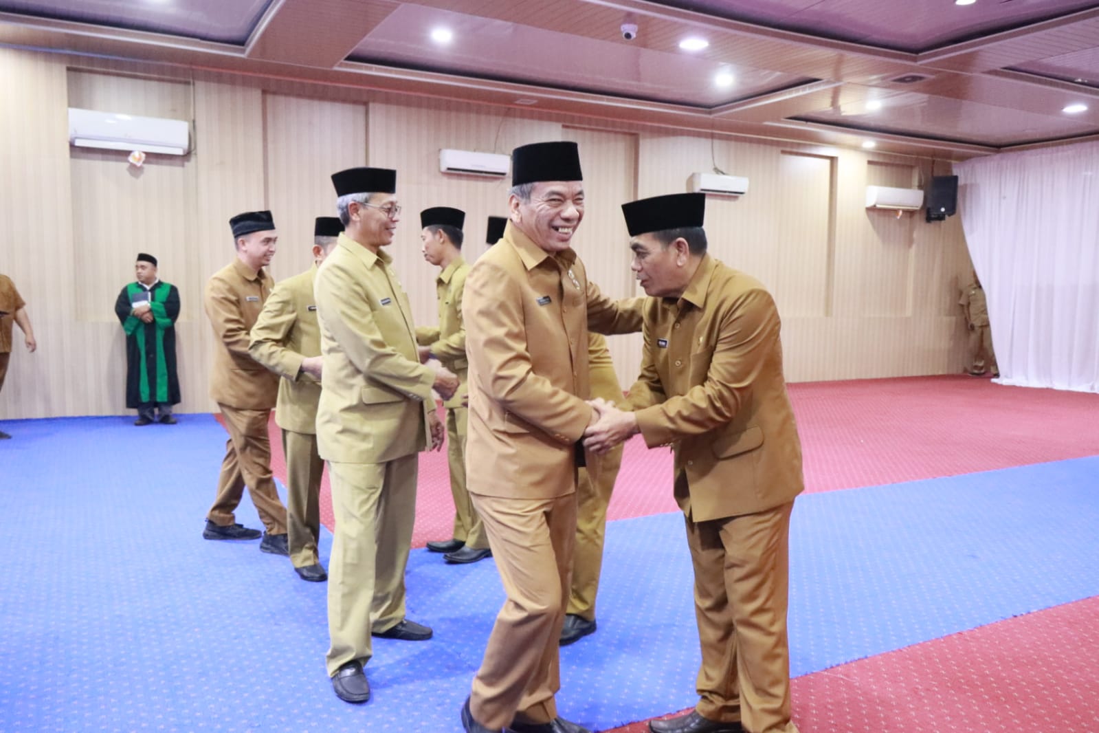 Sekda Binjai H.Irwansyah Nasution menyalami pejabat Administrator Pemko Binjai seusai dilantik (ist)