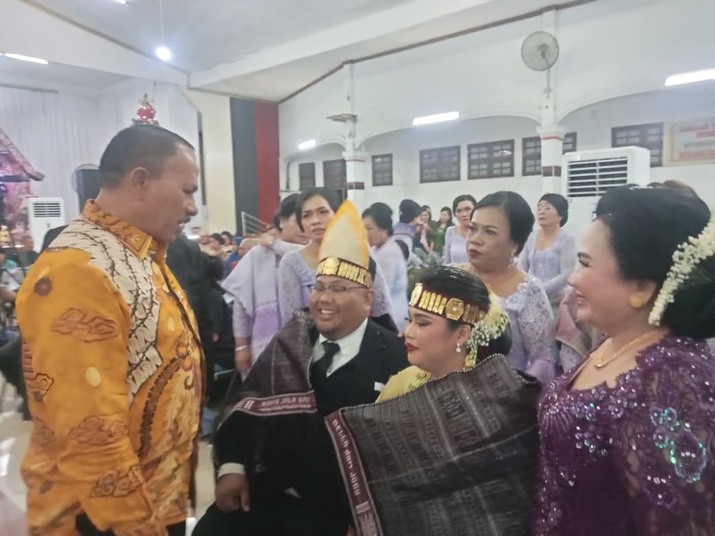 Maruli Siahaan menghadiri pesta pernikahan anggota keluarga PPSD Siahaan Kota Medan, Jumat (5/12).(ist).