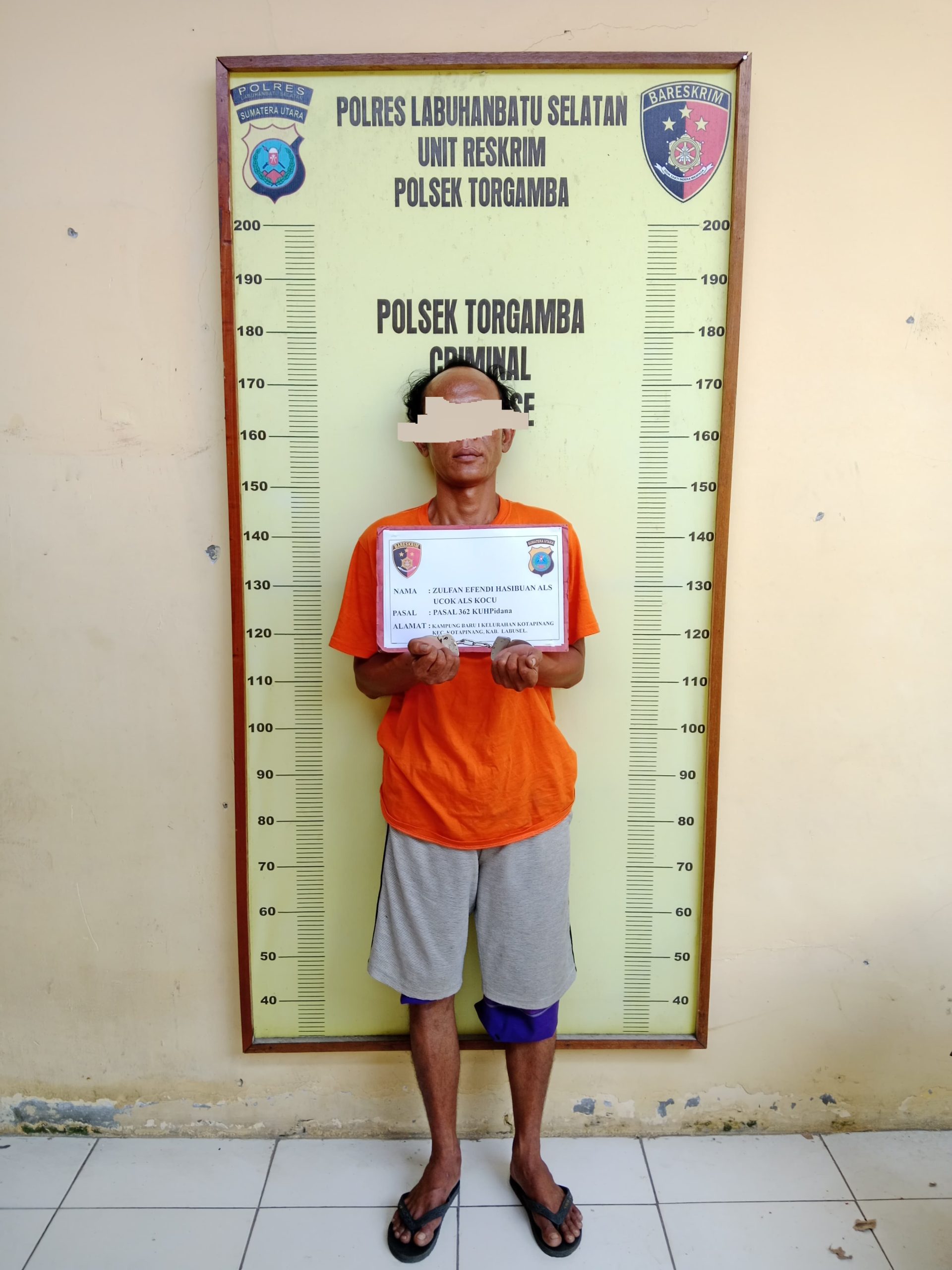 Polsek Torgamba, Polres Labuhanbatu Selatan (Labusel) berhasil mengungkap kasus pencurian barang milik pengunjung di Masjid Al-Ikhlas, Dusun Cikampak 1B, Pinang Awan, Desa Aek Batu, Kecamatan Torgamba, Kabupaten Labusel. Seorang tersangka ditangkap.