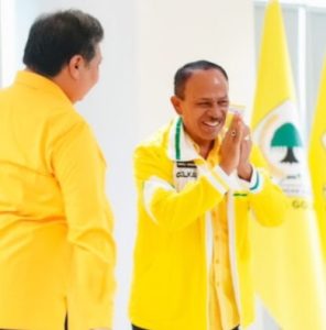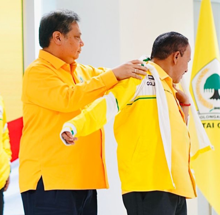 Ketum DPP Golkar Airlangga Hartarto pasangkan jaket dan berikan KTA kepada Kombes Pol.(Purn) Dr.Maruli Siahaan SH.MH.(ist).