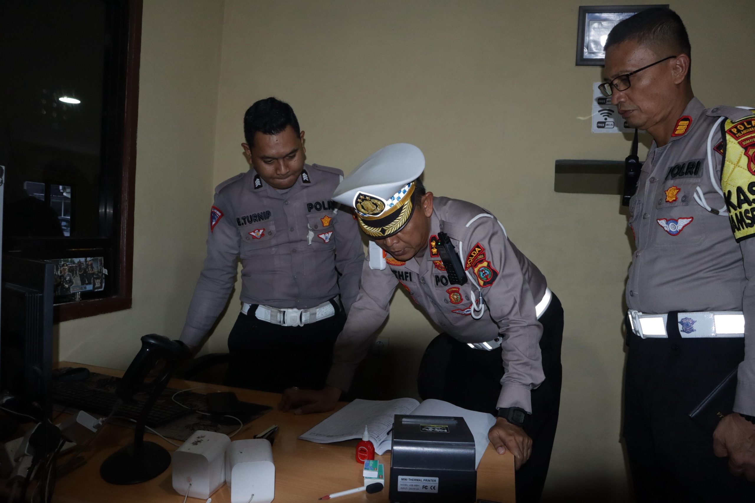Wadir Lantas Polda Sumut, AKBP Luthfi sidak ke Satpas SIM Polres Polres Pelabuhan Belawan yang disambut Kasat Lantas AKP Pittor Gultom, Selasa (23/4/2024).(ist)