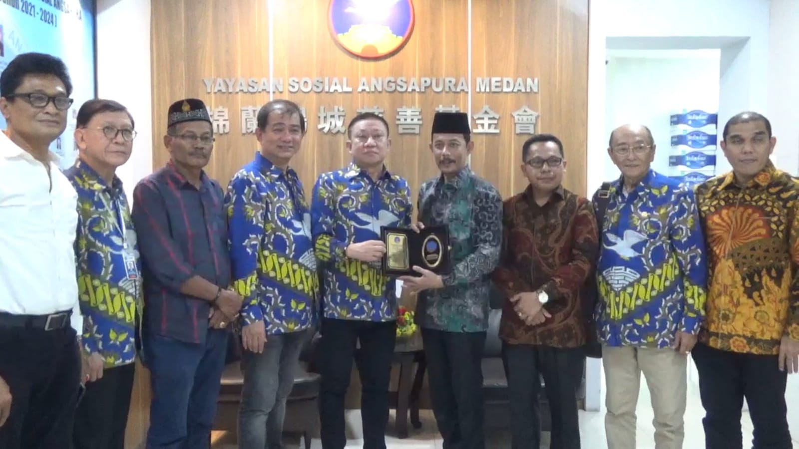 Sebelum meninggalkan kantor Yayasan Sosial Angsa Pura, Arif Rahmansyah Marbun diberikan tanda cindramata plakat oleh Ketua Yayasan Sosial Angsa Pura, Drs Ronald Tok.