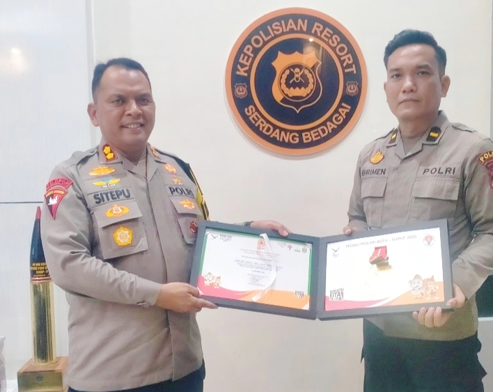 SERGAI, INVOCAVIT.COM – Polres Serdangbedagai (Sergai) menerima penghargaan berupa medali dan plakat dari Ketua Umum KONI Pusat Letjen TNI (Purn) Marciano Norman.