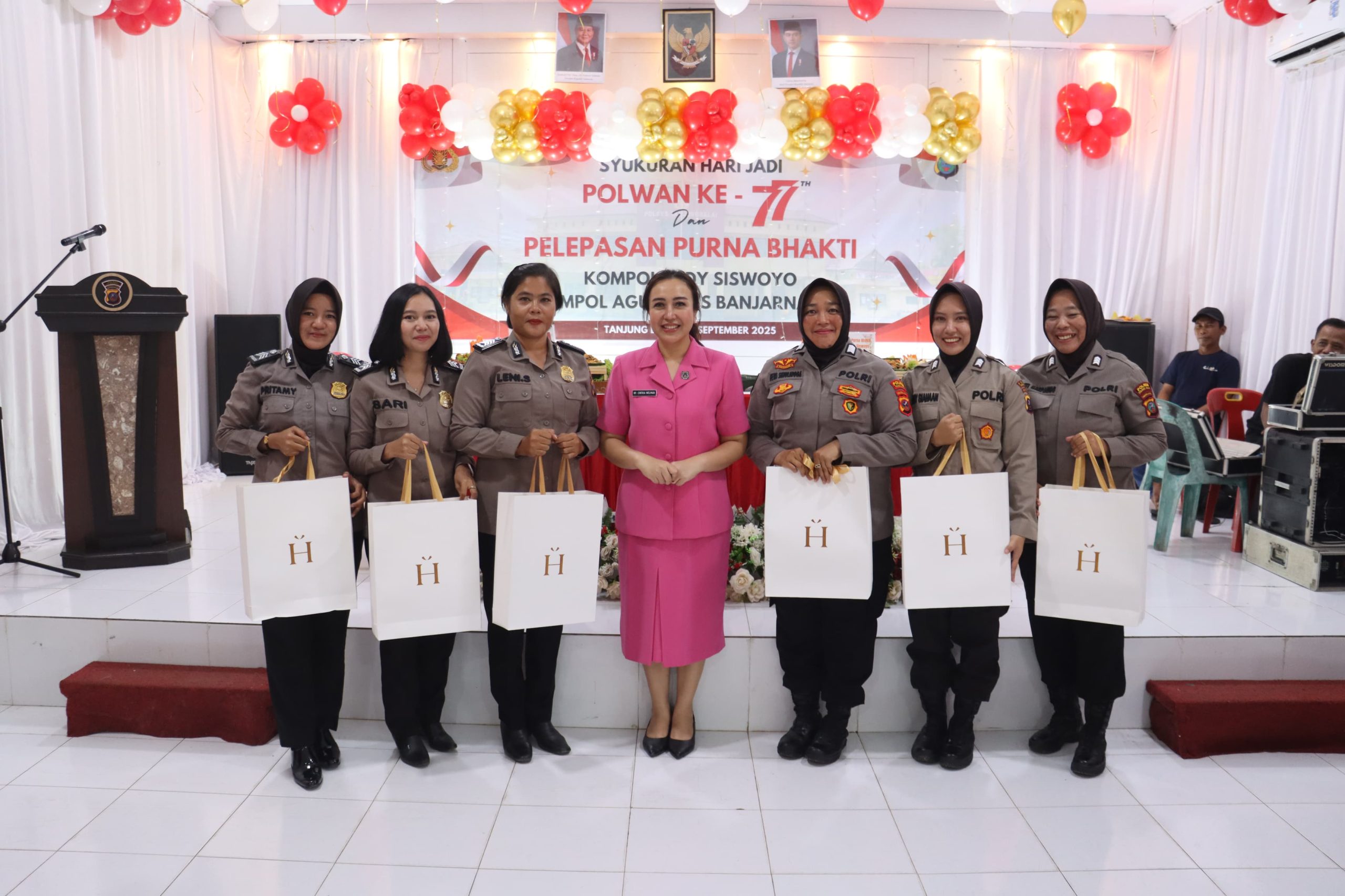 Ketua Bhayangkari Polres Tanjung Balai Ny Chintia Welman bersama Polwan dalam acara HUT ke 77 Polwan.(ist).