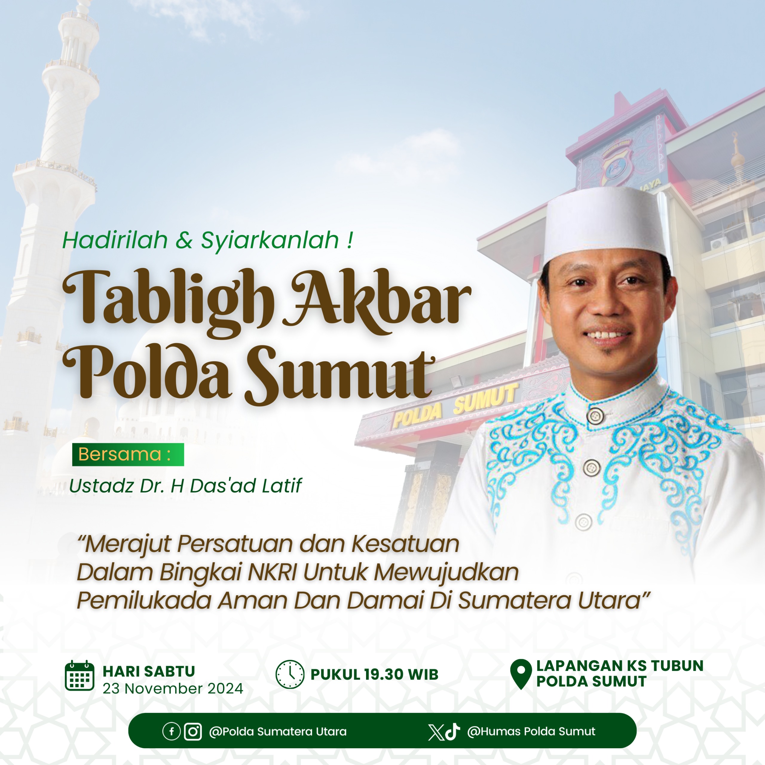 Tabligh Akbar Polda Sumut menampilkan penceramah Al-Ustadz Dr. H. Das’ad Latif, Ph.D.(ist)