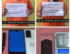 Pria dan wanita jaringan pengedar sabu diamankan Polres Labusel bersama barang bukti.(ist).